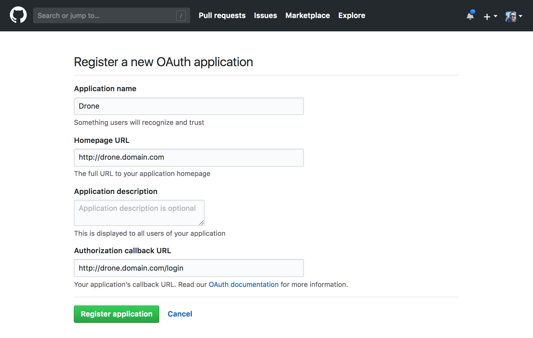登录 GitHub,在 https://github.com/settings/applications/new 新建一个应用。